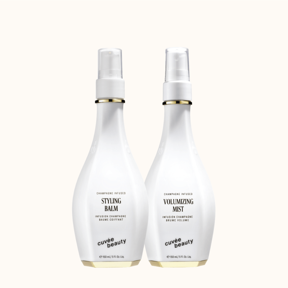 For the ultimate big hair energy. A full-size Styling Balm creates effortless style pumped with volume and shine. Followed by our full-size Volumizing Mist for extra oomph and strong staying power. Both formulas are enriched with our exclusive Cuvée Complex™ of premium skincare ingredients and deliciously scented with our intoxicating Cuvée fragrance featuring champagne and fig leaf notes.